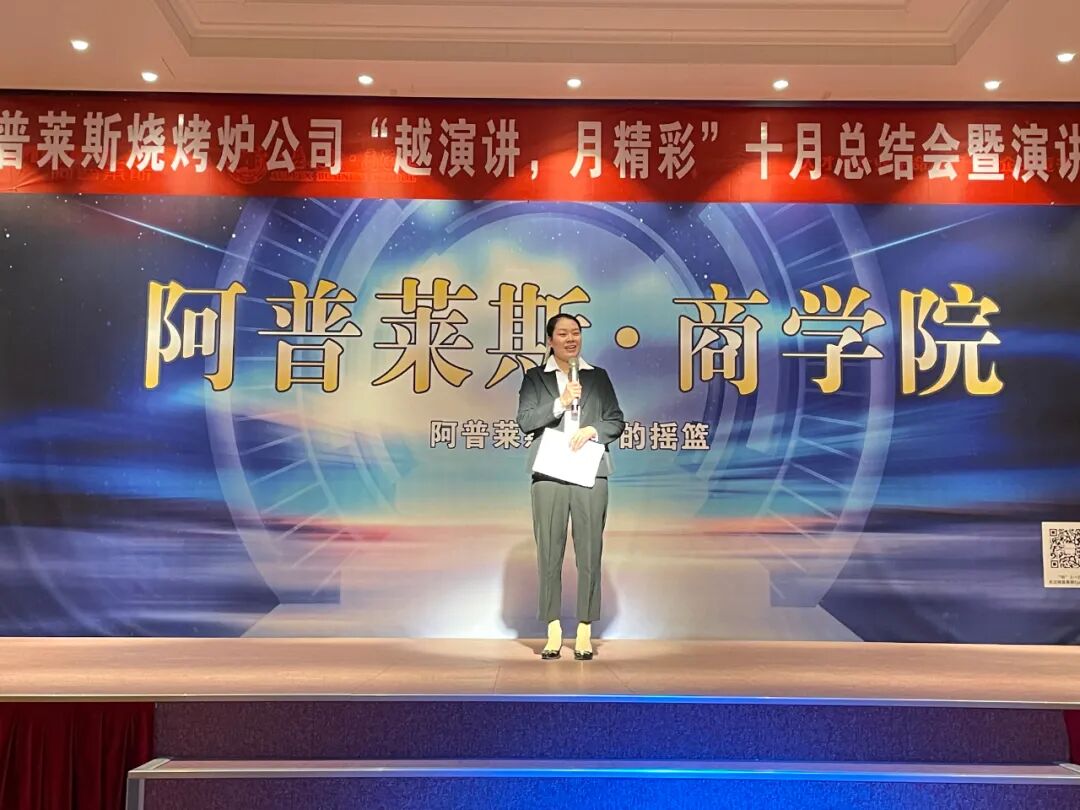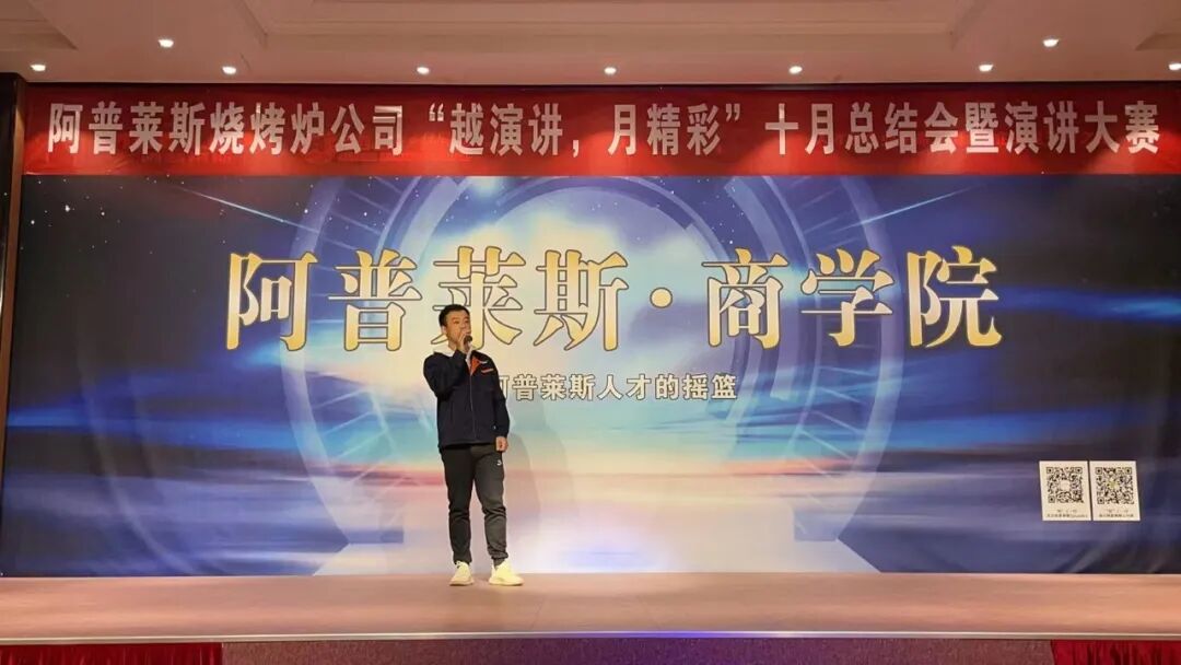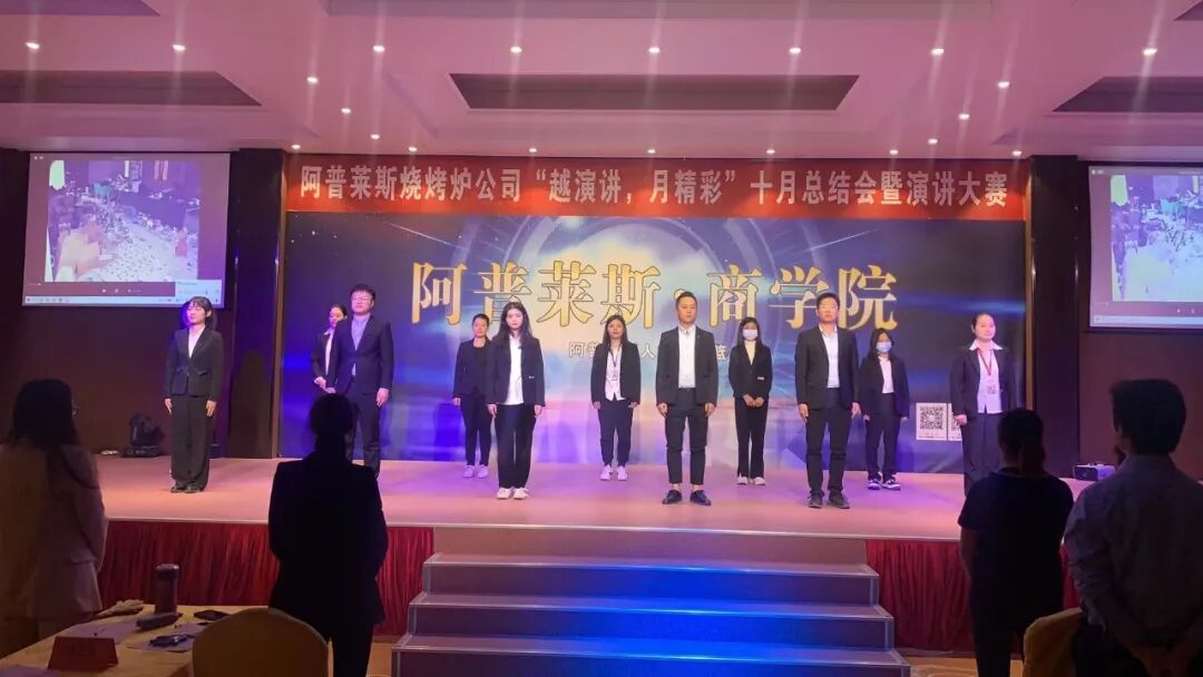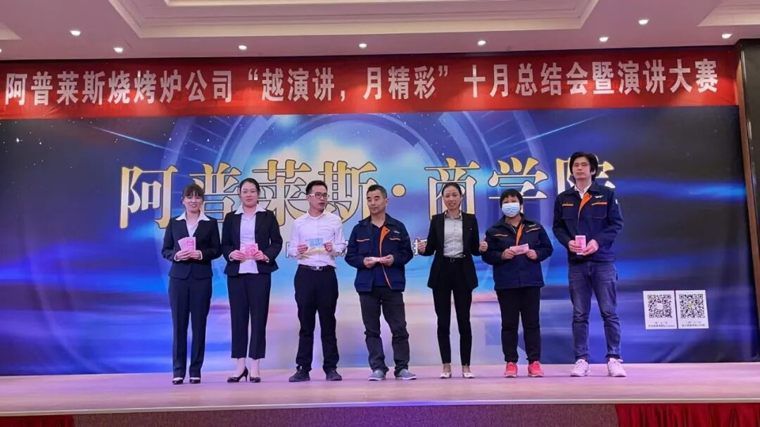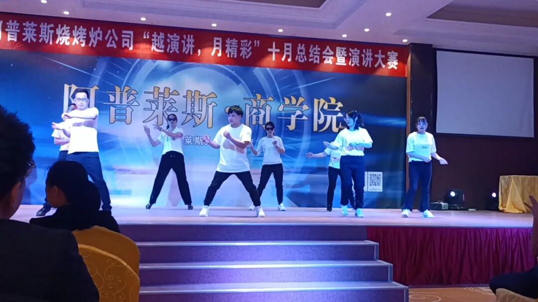 11日下午,阿普莱斯集团旗下子公司——烧烤炉公司在商学院举办“越演讲,月精彩”10月总结会暨演讲大赛。