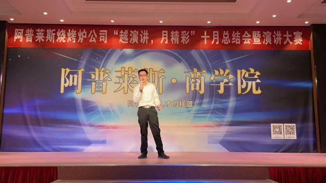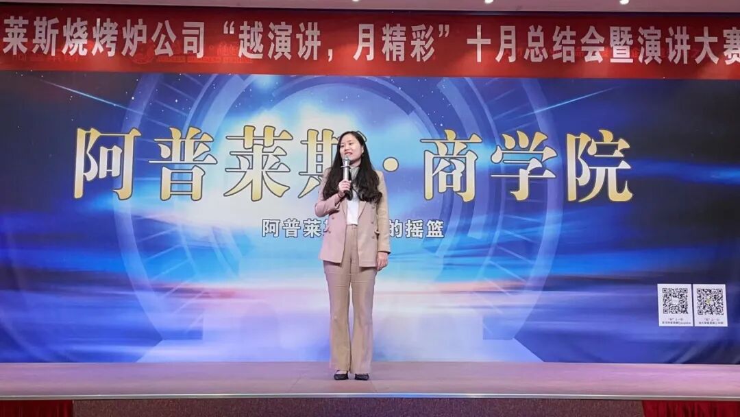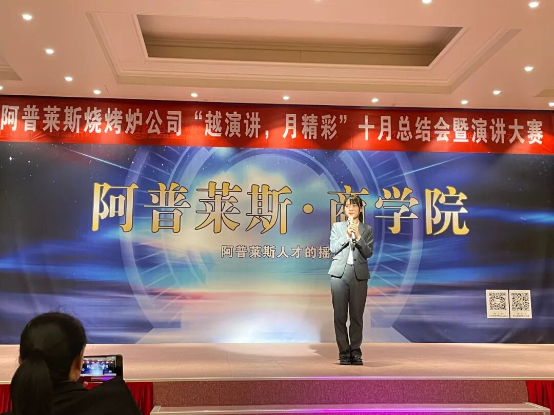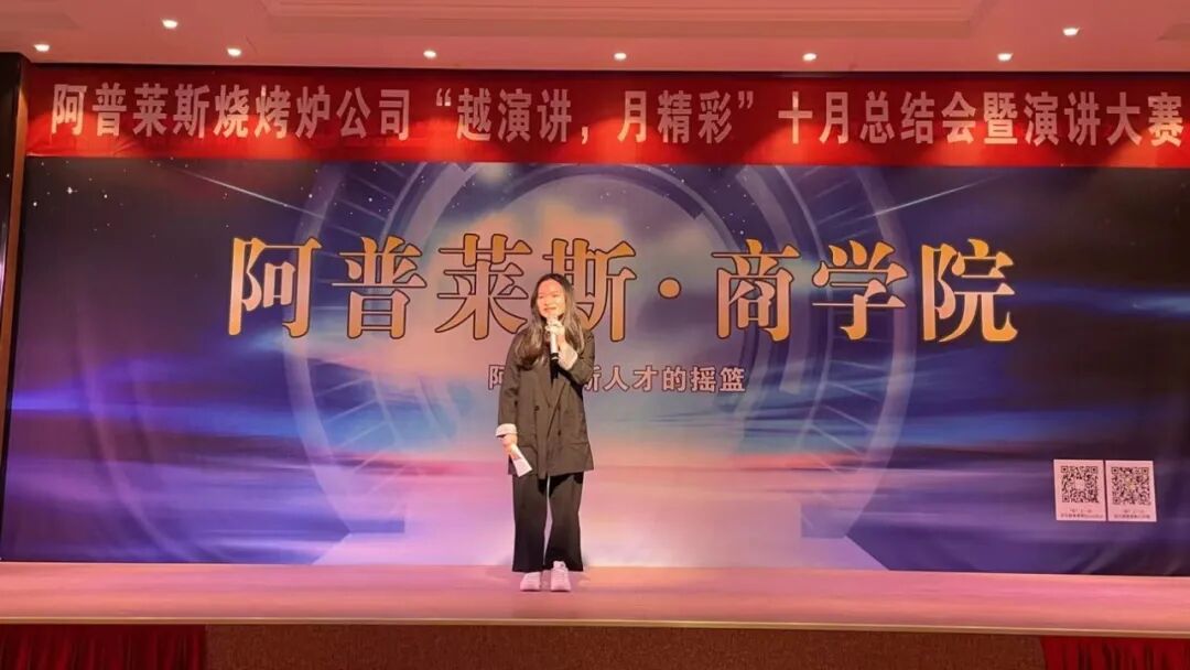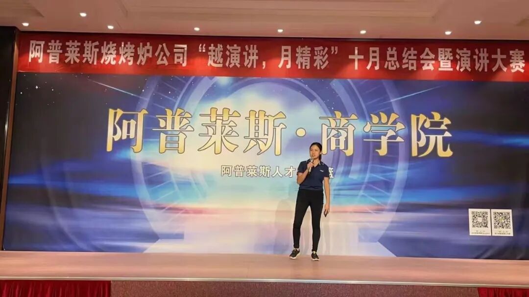 11日下午,阿普莱斯集团旗下子公司——烧烤炉公司在商学院举办“越演讲,月精彩”10月总结会暨演讲大赛。
